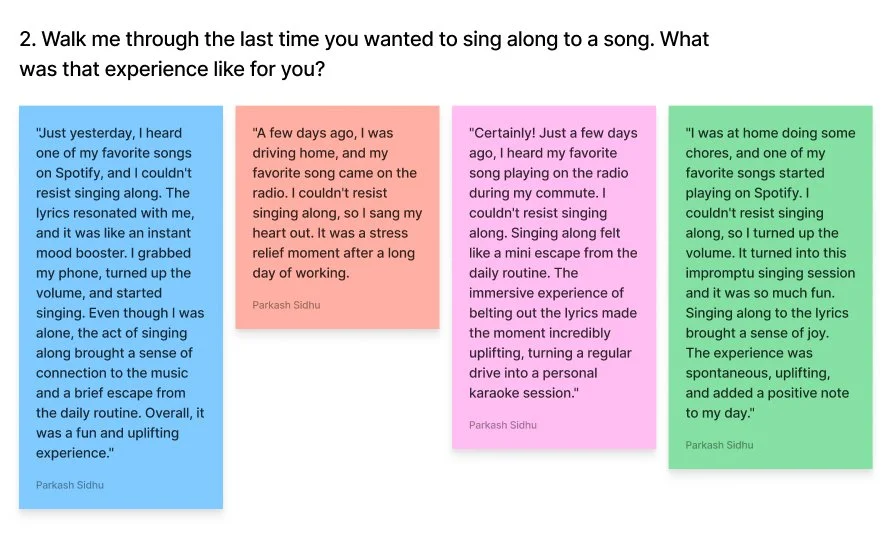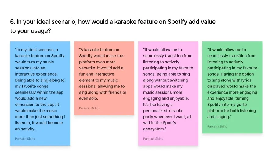 Background: Spotify is a leading music streaming platform, offering personalized playlists and real-time lyrics to enhance listening. With the rise of interactive music experiences like social media duets, users increasingly seek ways to engage more actively with music. A karaoke feature would allow Spotify to tap into this trend, enhancing user participation and creativity.