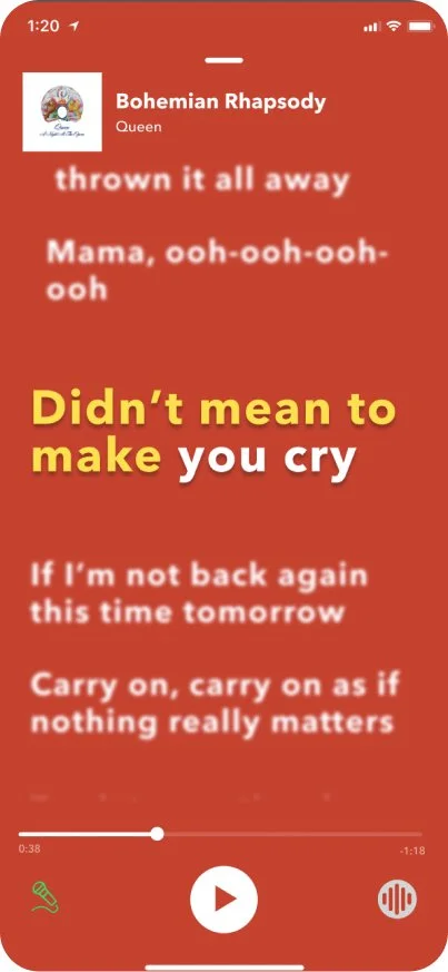 After concluding the usability testing phase, it was observed that users encountered a brief delay in discerning which section of the lyrics was highlighted during song playback. To address this, adjustments were implemented: the upcoming and previous lyrics were reduced in size, a subtle blur effect was applied, and a distinct color indicator was introduced to highlight the segment of the lyric currently being sung, thereby enhancing clarity and user engagement.